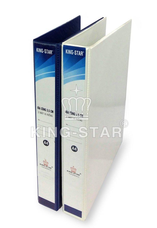Đặc điểm: là sản phẩm rất thông dụng trong văn phòng, kho,... với chức năng để lưu trữ hồ sơ, chứng từ giấy các loại. Bìa 2 còng xi kiếng A4 - 3.5P King Star là sản phẩm được VPP Vĩnh An Phát phân phối và được sản xuất tại Việt Nam. Bìa 2 còng xi kiếng A4 - 3.5P King Star được làm bằng bìa giấy cứng, 2 mặt dán lớp simily trắng chắc chắn và được bọc kiếng, gồm 2 còng loại 3.5cm giúp đóng mở file rất an toàn và chắc chắn.